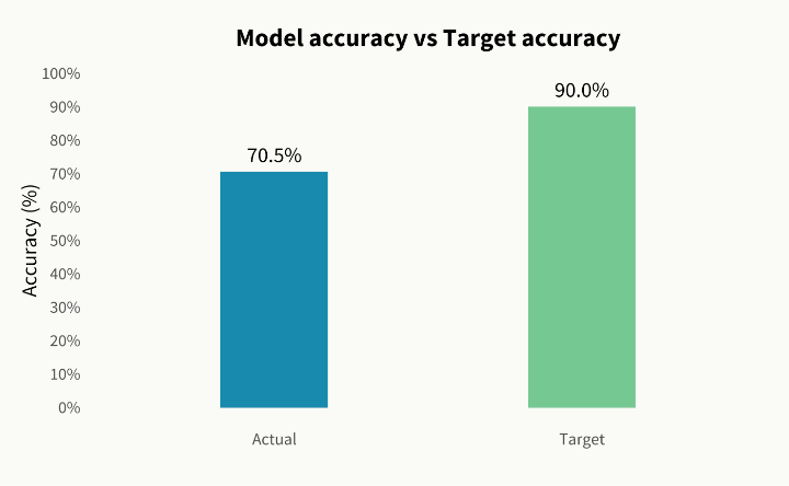 - Iterative improvement: The next step is Feature Engineering. This is a smarter enrichment and reconstruction of variables to increase the distinguishing power and bring the accuracy towards a target of 90%.