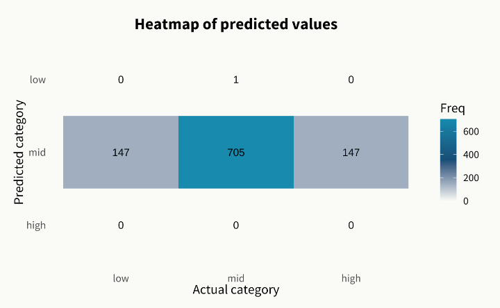 - Complaints as an important independent variable: The complaint score appears to be the strongest predictor. Customers with a low complaint score below 34% almost always fall into the mid-segment (69% of the total number of customers). But even with a complaint score above 34%, there is still a 75% chance of ending up in the mid-segment. This demonstrates that basic satisfaction (few complaints) is reasonable for maintaining the bulk of the revenue.